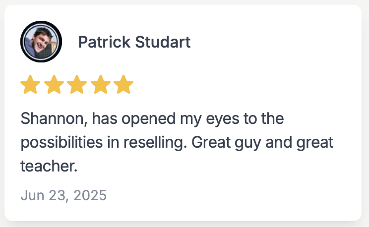 The tools that Shannon provides are spot on and help you look at things mathematically, which is key to any success. He takes you step by step through all of the pieces that will be required, including getting a sales tax certificate and all of the approaches that you will need to use.