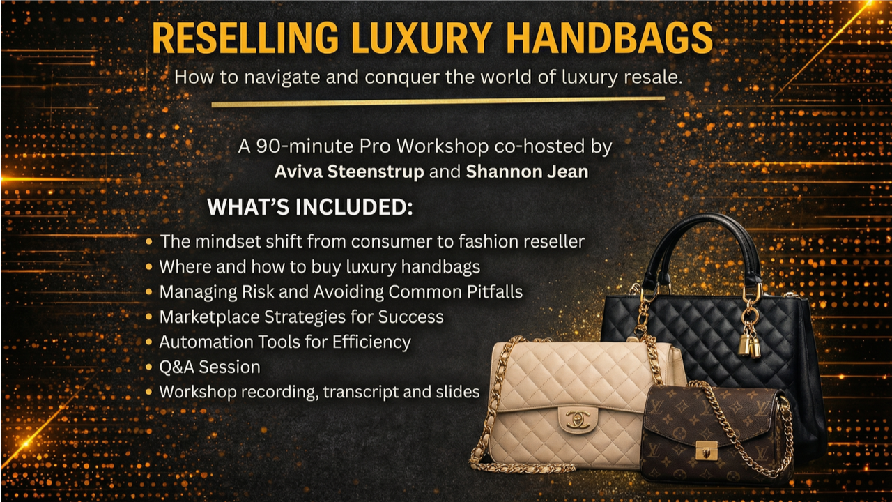 Aviva was a corporate employee with a healthy fear of financial risk. She had industry knowledge but zero business experience. She was terrified of losing money. Then she met Shannon, and everything changed. In this workshop, Aviva shares the exact system that allowed her to overcome her fears and build a thriving handbag business in one of the most difficult market conditions in years. You'll learn the sourcing secrets, authentication techniques, pricing strategies, and sales systems that are making her thousands every month. If she can do it, so can you.